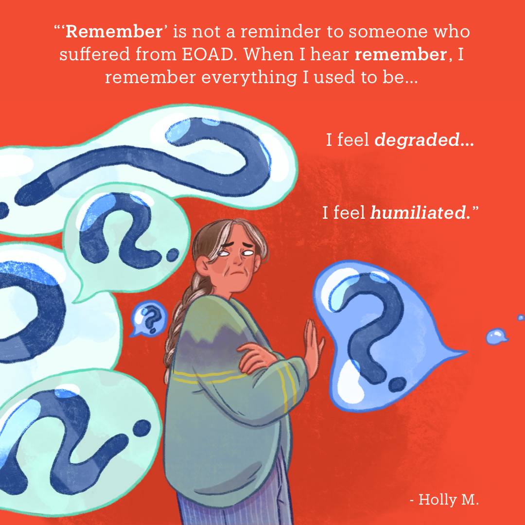In this article, an individual living with Alzheimer’s shares how the word “remember” has become their least favorite word to hear, and even triggering, because they of course struggle to remember things with their progressing disease.